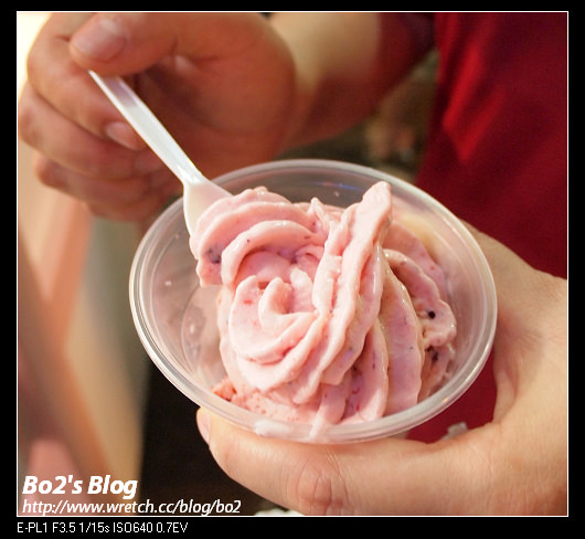 外觀是橘紅色,仔細看裡頭還有細微的蕃茄鳳梨顆粒,優格中和了蕃茄的甜味及鳳梨的酸味,真的挺不錯。—————–【草莓葡萄優格】NT.50
