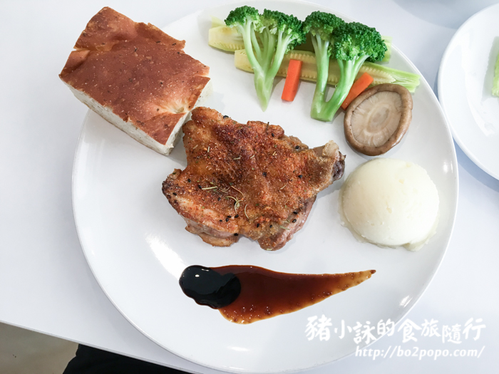 一旁的香草麵包有小麥香氣也有迷迭香氣息,搭上水煮青菜跟馬鈴薯,其實也算是能飽足的一餐。