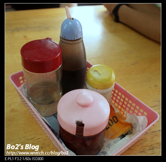 桌上有醬油和辣椒醬等調味料..可視個人需求添加…