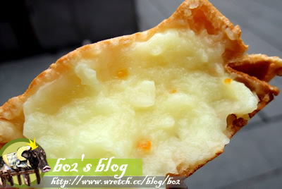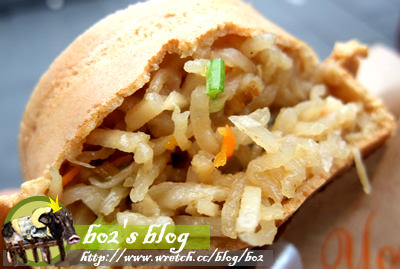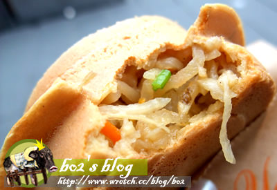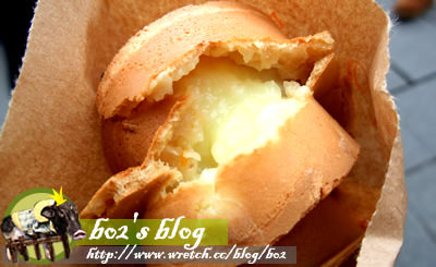 衡量晚上還有其他飯局..而且對”大紅豆”興趣缺缺…所以我只買了奶油口味及蘿蔔絲口味兩種….用慢火烤的香香酥酥的焦褐色薄餅皮..吃起來脆脆又帶了點甜味的口感很獨特…滿滿的內餡也給的很有誠意..