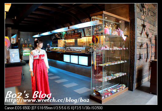 一個擺放的是老闆從韓國帶回來的各式紀念品,消費滿額就可兌換。