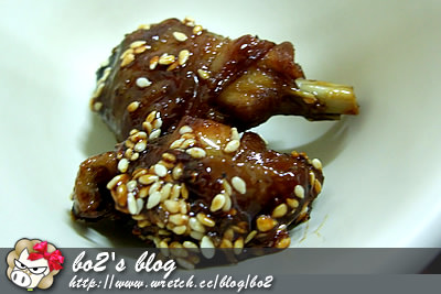 雞肉外覆滿了白芝麻的蜜汁…