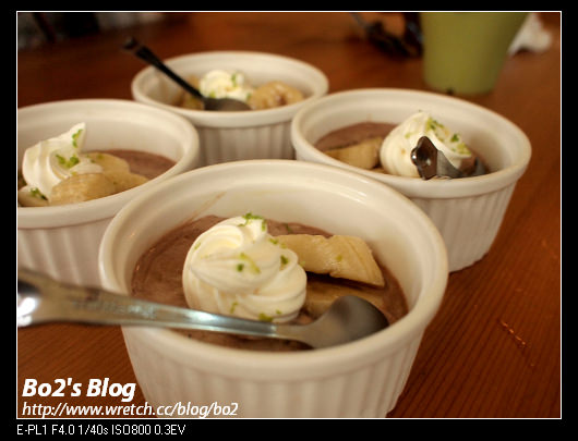 搭上甜甜的奶油淋上巧克力醬…應該是咖啡中和了巧克力的甜膩……