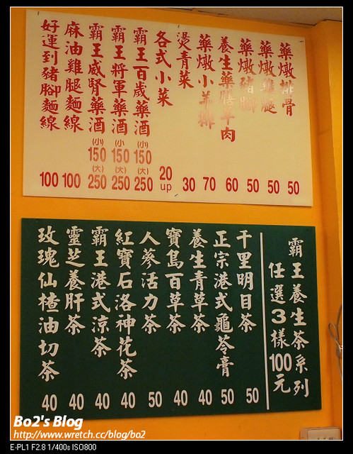 跟在羅東夜市內用餐需拼命擠的狀況相較..這邊的確舒適許多哩…—————–既然店名叫藥燉排骨…果真是”霸王”的主打…當然..附餐部份..似乎就顯得薄弱些….和羊肉湯透明無色的湯頭完全不一樣…就像當歸麵線一樣是暗褐色湯頭…除了”藥燉排骨”等熟食類外..也有販售”養身茶”….當天因為已經飽到快翻肚..不然該來杯養肝茶….讓我這因熬夜到快爆掉的肝來滋補一下也不錯呢..—————–【藥燉排骨】NT.50