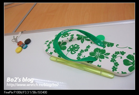 消氣海灘球..拜託…要當個真男人….就該先把這海灘球氣吹足….才能去墾丁來個…陽光.沙灘.比基尼之旅…..可惜這工作環境…我看凱中宅宅…你還是認份點….只能找兩位中年大叔伴你出遊囉….(同學.老大..我說的絕對不是你們倆..)..在兩位綠葉的襯托下….穿著單隻夾角牽拖….穿著花花海灘褲.帶著哈囉踢踢手環.吹著攜帶型電風扇….拿著海灘球擦著保濕防曬乳…..非常的與眾不同….也非常亮眼….相信走在墾丁大街上…你會是大家的焦點…