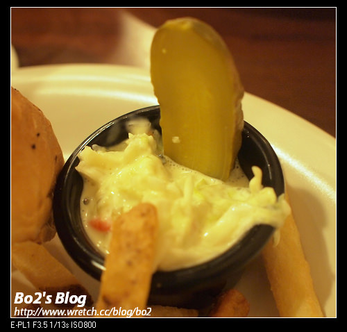 不過..這醃黃瓜..是該這麼直接吃掉..還是該夾在漢堡內…當下好像沒仔細想過呢….