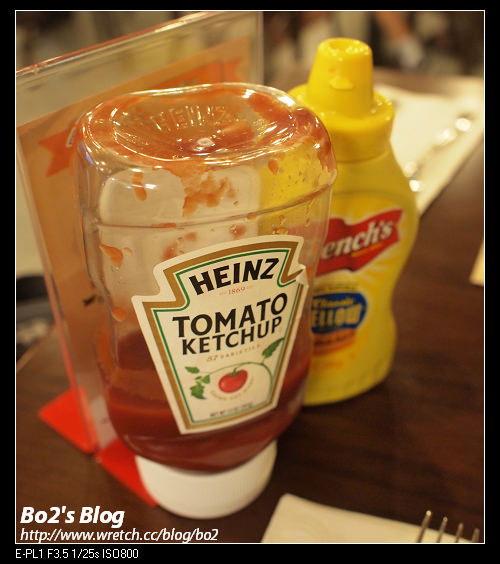 無多做其他調味..必須靠著桌上附的”番茄醬”跟”芥茉醬”來提味,,,