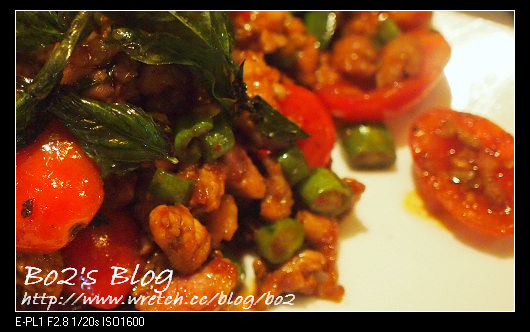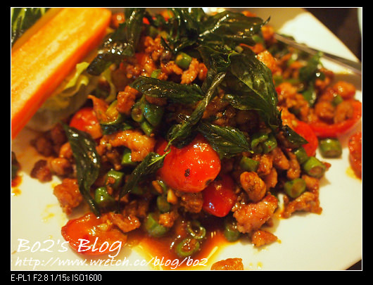 打拋豬可是泰式料理精髓..吃泰國料理必不可少…和些許的豆子(?).蕃茄扮炒過的打拋豬粒粒分明..香氣逼人…
