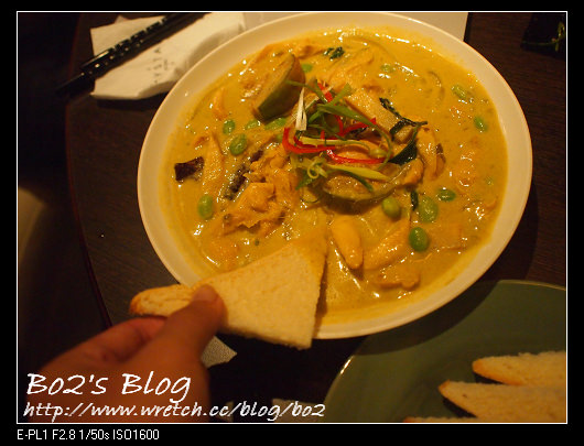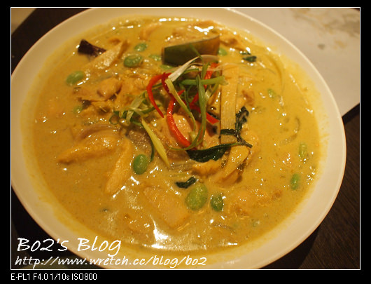帶有獨特香料氣息又辣的夠味的綠咖哩..濃醇的湯汁奶味頗重..加上軟嫩的雞肉…蠻適合配飯吃….