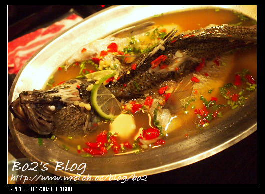 隨菜還附了四片白吐司…只是我個人覺得…吐司搭上這醬汁..這樣的組合很突兀..並不太合搭…—————–【清蒸檸檬鱸魚】- 原價NT.320/特價NT.100
