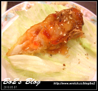 包上生菜..加上些甜辣醬..那油膩感會比較消退…
