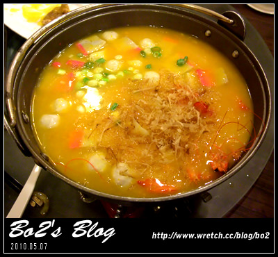 黃澄澄帶有淡淡甘甜味的湯底..原來是南瓜濃湯來著…