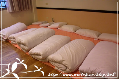 當晚我們住的是”6人通鋪”房…乾淨的木頭地板..上面鋪了六床棉被..