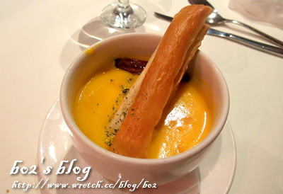 黃澄澄的..果真是南瓜濃湯無誤…可搭配手工酥皮一同享用..——————【湯】義式海鮮清湯