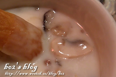 搭配浸過濃湯後的手工酥皮一同食用…那獨特的口感加味道..會讓人忍不住一口接一口..不得不說..這湯真的是濃純又好喝呢…..