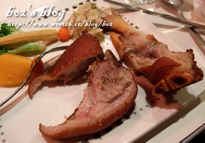 這豬腿排上桌時..服務生以俐落的手腳..將大骨跟肉切割開來…食用上更方便…肉質軟嫩..吃起來輕鬆不費力..