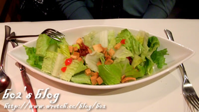 烤過的切片牛肉混合生菜..加上特製凱薩醬…旁邊還附沙拉+薄餅..味道應該挺不錯的….——————【沙拉】蘿美生菜沙拉