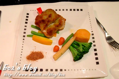 煎烤後的魚排..口感鬆軟淋上特製的茴香奶油….味道很清爽…對我來說這道菜調味比較清淡…而且份量略小..我個人比較不推薦這道..——————【主餐】法式烤雞