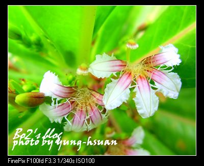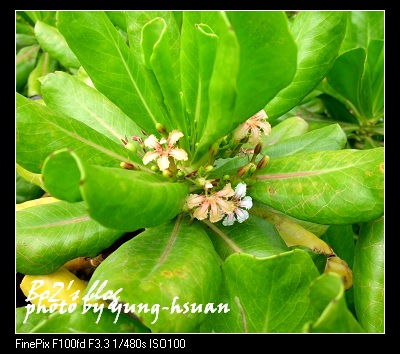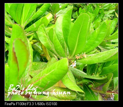 一叢叢開滿小白花的綠色植物..就是這”草海桐”…