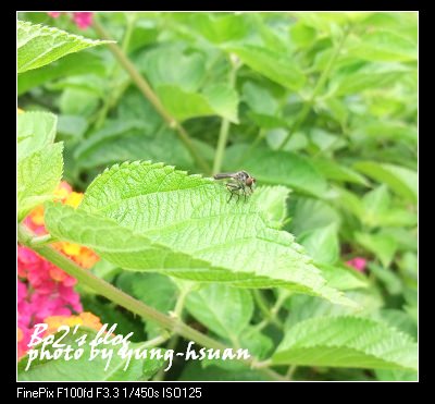 無獨有偶..竟然讓我拍到蒼蠅停在葉子上的一瞬間