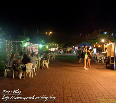 到晚上卻換了附面貌..閃爍的燈光.加上行動露天咖啡屋.真是熱鬧非凡..果然是越夜越美麗呢…——————【延伸閱讀】2010年5/7-5/8″北鮪22度的幸福”體驗之旅in屏東東港[行程總列表]2010屏東食記-東港正宗肉圓in”北鮪22度的幸福”體驗之旅
