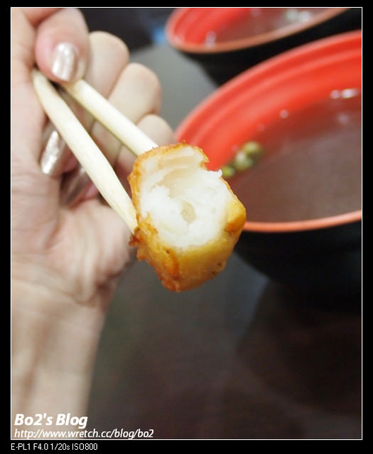金黃的外觀感覺很酥,裡頭包著新鮮又Q彈的花枝,挺有咬勁的。