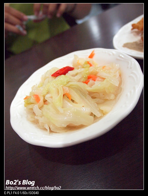 高麗菜醃製的泡菜,冰涼又爽脆,在炎熱的天吃這一味,有種舒暢的感覺。