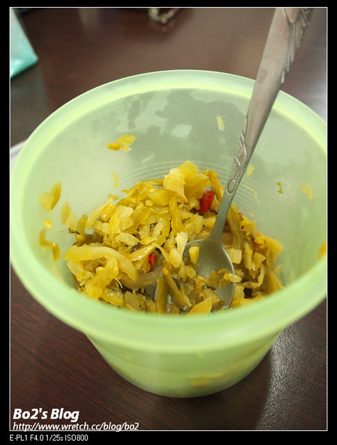 免費提供的酸菜,帶有微微的鹹甜味,雖然我不能吃牛肉麵,當天也不是吃湯麵,