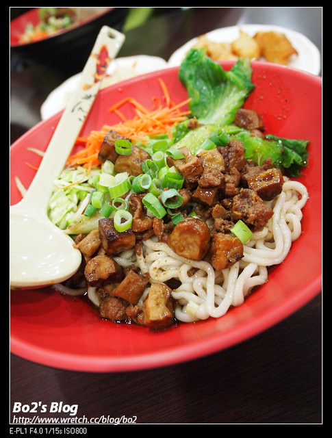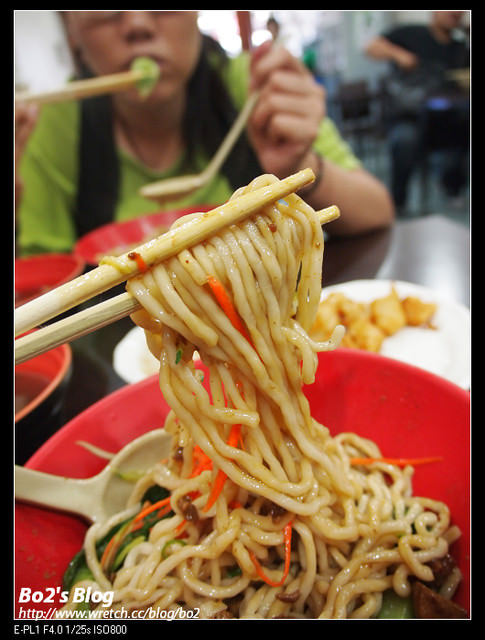 上頭淋上了滷肉燥/豆干/蔥還有些許的紅蘿蔔絲。