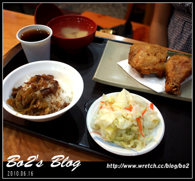 雞腿飯小菜是炒高麗菜…爽脆..不過有點小油…