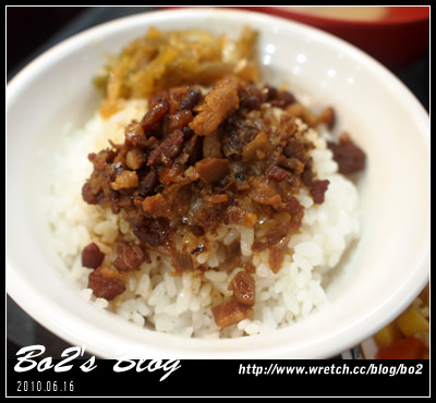 肉燥飯的飯粒軟硬適中..加上肉燥.還有些許的酸菜…