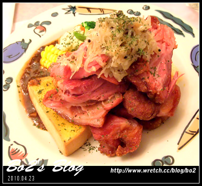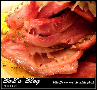 雖然這不是我點的..不過還是淺嚐一下..烤的很軟嫩的雞腿排帶有”迷迭香”的氣味..這雞腿排的確是很美味呢…