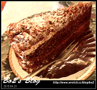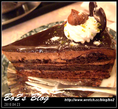 帶有香鹹氣味的大蒜麵包.口感紮實….不過墊在豬腳下..難免會沾上豬腳醬汁….沾到醬汁的麵包雖不算難吃..但我還是比較習慣麵包單獨送上..—————–【黑森林-小蛋糕】- 德國酸椰脆皮豬腳 NT.499
