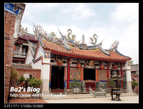 →右轉左側為藍田書院 開放時間:06:00-21:00日期:2010/8/24門票:免費參觀—————–南投的藍田書院俗稱文昌祠..或稱為孔子廟…與草屯的登瀛書院..集集的明新書院並列為南投縣三大古蹟書院…雖然我很愛古蹟的….但這藍田書院並不在我的預定行程內….而是為了尋覓前次到南投時….找不到的”源振發”意麵店…