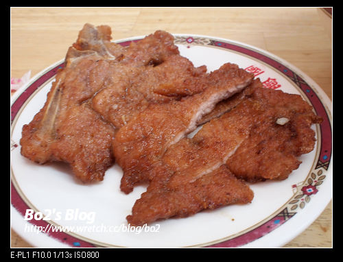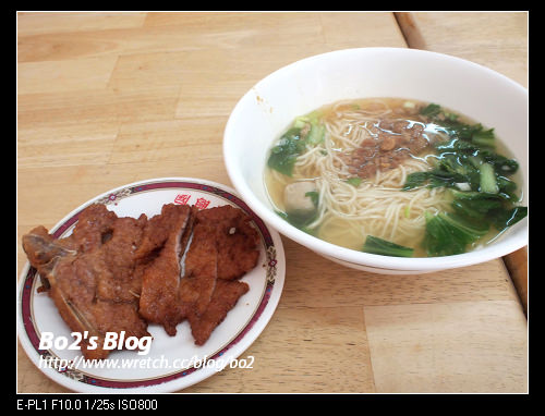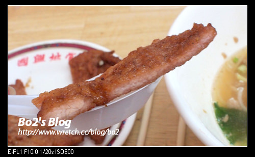 國興排骨以”排骨便當”著稱..但反骨的我….排骨點是點了.就是給人家點了排骨麵..囧…原以為排骨麵的排骨會跟湯麵放一塊..原來是分開放..肉片雖不算厚..但還蠻大片的…炸的酥酥的排骨很入味…
