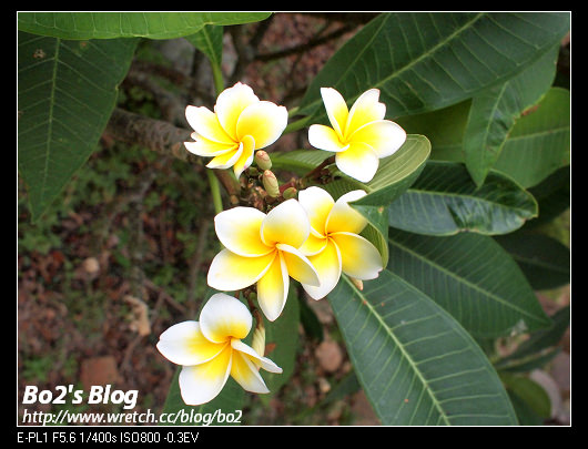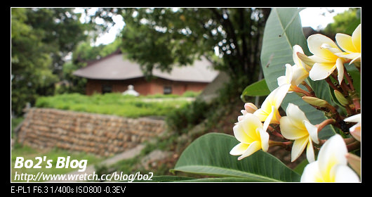 神社後方的盛開的雞蛋花還真美麗….從這方向看..別有另一番風味哩..