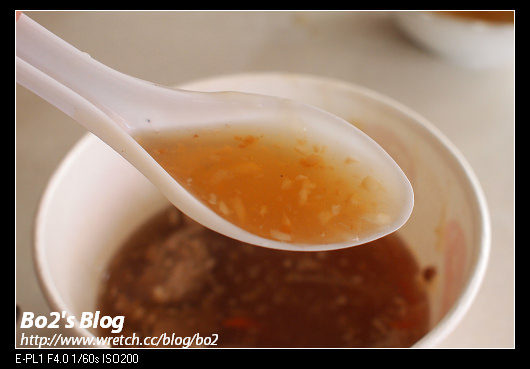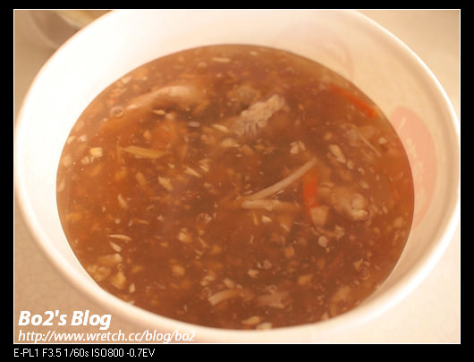 適度鍋芡的羹湯裡..內含筍絲.紅蘿蔔絲.柴魚.蒜末等..真的是蒜味十足..裡面應該是有加了醋..那醋酸酸的滋味非常濃郁..