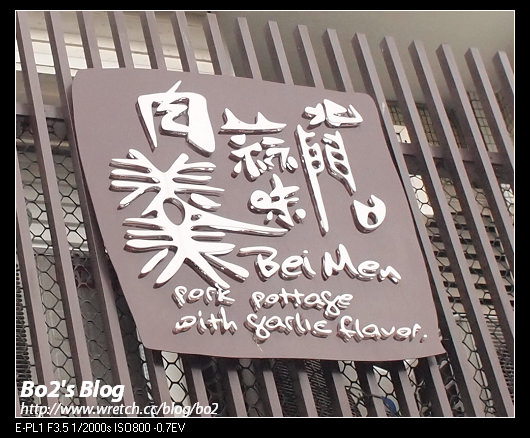—————–回味完那令我們難忘的蔥油餅後..驅車來到”北門蒜味肉羹”..暗褐色的招牌…嶄新的很耀眼..看樣子才剛改裝不久吧??