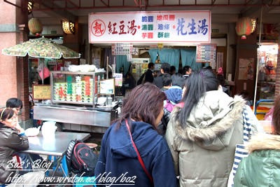 不過店內不大..當然不會有太多座位(共約略20多個)…和別人併桌是在所難免的呢…—————–這才發現..原來這甜品有冷熱之分哪…那天下午天氣有點小悶熱…雖說杏仁露(冰)我很感興趣..但脆圓(熱)更吸引我..維持一貫的反骨精神..所以還是選了熱湯..囧..雖說價格小貴(和台南相比)..不過味道還算不錯…看到有人點油條..這似乎是配這甜湯一起食用..之後如又來”大稻埕”..再點這一味來試試….——————【花生綜合圓(熱湯)】NT.50