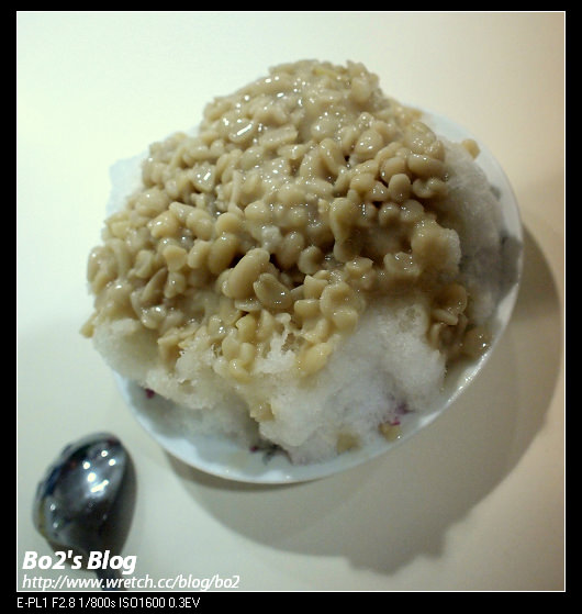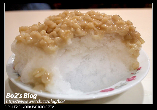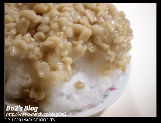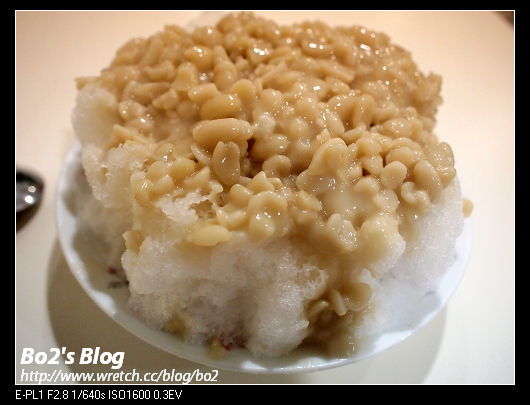 刨的很綿密的剉冰..淋上透明糖水..以及煮透的花生顆粒