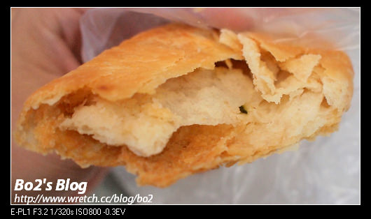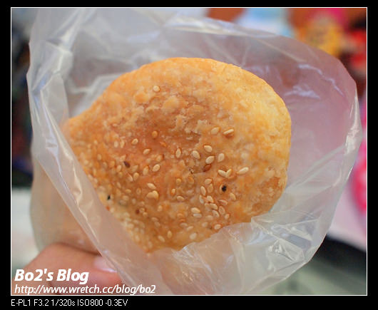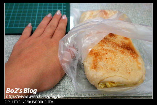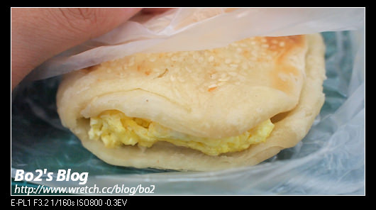 雖然燒餅皮就薄薄一片..蛋夾了蔥蛋後..份量也是不小哩…上頭一樣佈滿白芝麻….