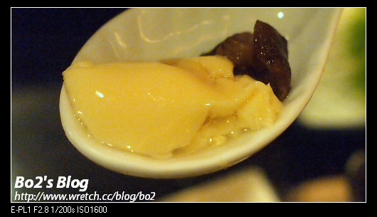 茶碗蒸裡面的材料平實..有香菇.蝦子.雞肉等等..口感Q軟滑嫩..隱約吃得出柴魚高湯的氣味…
