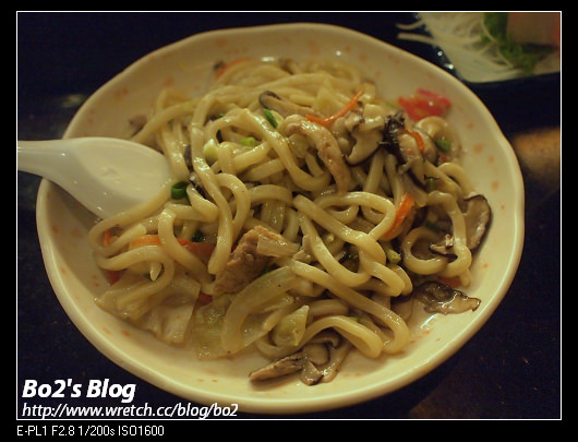 加上肉絲.香菇.蘿蔔絲及洋蔥下去炒的烏龍麵…鹹度適中..烏龍麵也很Q彈…