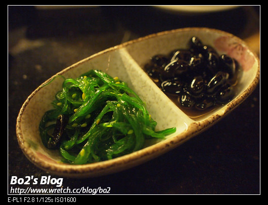 鮮綠色的酸甜冰涼海帶絲加上甜黑豆…..屬開胃小菜…—————–【日式沙拉】-竹定食