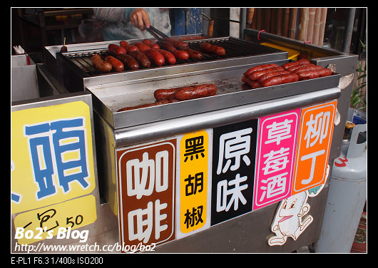 左到右依序為…”咖啡香腸”..”柳丁香腸”..”黑胡椒香腸”…