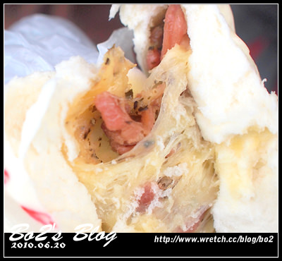 只是因為不夠熱..那牽絲的感覺已經冷掉..起士裡面還加了些香草..有淡淡的香草氣息..(迷迭香?)是說這香腸內餡跟起士的滋味..我是還蠻喜歡的