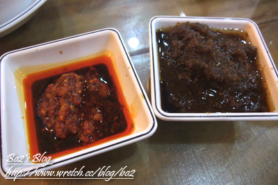 沾醬和飲料一樣.有需要者自取….我個人習慣是(沙茶醬+醬油)..十八醬是因為覺得名稱特殊..所以特地挖來嚐嚐..十八醬感覺有點像辣豆瓣醬..不過比豆瓣醬更增添辣味..吃起來還是普通的沙茶醬比較合我口味(果然是老派!!)