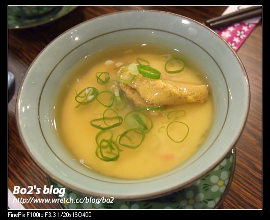 內有海膽.鮪魚肉.香菇.及蟹肉讓這碗蒸蛋鮮甜味十足…加上綿密香滑的口感…的確是好吃無誤.——————【味噌湯】- 套餐附加