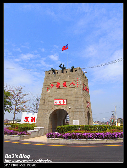 由九宮碼頭->接九井路日期:2011/04/05門票:無—————–金門主要分成大金/小金兩個島嶼,2010年的金門遊,因為時間太倉促,所以主要都是在大金玩,這次說什麼都要來小金玩上一遭,小金門又稱作烈嶼,有一說原本大小金是相連,之後才慢慢裂開。來到小金,真要認真玩,半天還是有點小趕,走馬看花的話,半天算是有足夠的,來這邊除了吃著名的芋戀肉/芋冰,鐵漢堡/勇士堡坑道也是蠻值得一走。”八達樓子”跟”八二三砲戰勝利紀念碑”,更是不能闕漏的地方。—————–