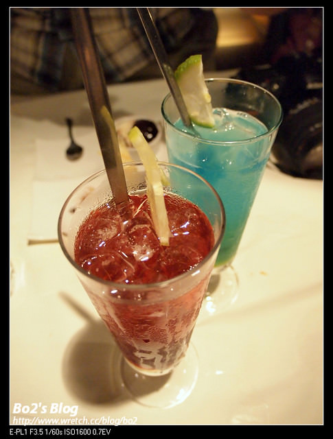 頗具趣味性的一道甜點…不過看起來有點甜膩..所以這不是我點的——————【飲料】膠原紅香檳vs.雪沁藍橙